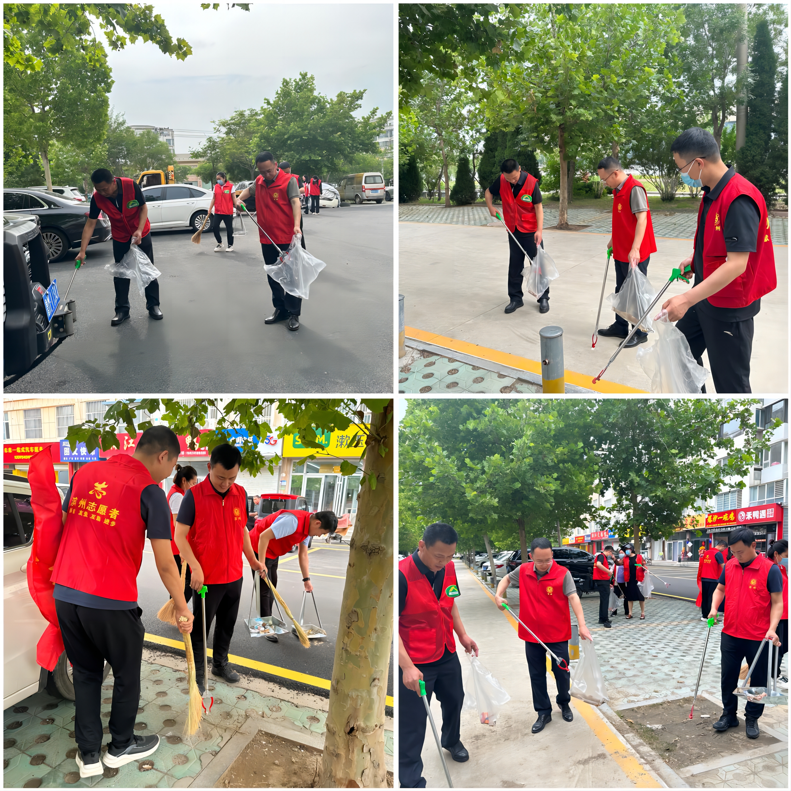 签约仪式结束后,双方党员联合开展“不忘初心、牢记使命”志愿服务主题党日活动,党员志愿者们穿上红马甲,拿起扫帚、垃圾夹等清扫工具,前往中海学苑小区沿街认真清扫路边垃圾、杂物和卫生死角,将“我为群众办实事”实践活动落到实处,用实际行动改善滨州城市面貌、共享美好家园。