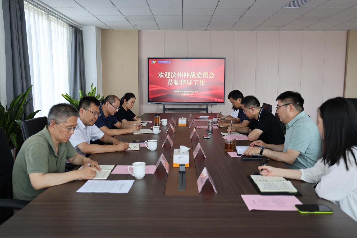 6月14日上午,滨州仲裁委员会办公室党组书记、主任王晓东带队到滨州新能源集团进行走访调研。滨州新能源集团党委副书记、执行董事、副总经理商献文,集团党委委员、副总经理王奉炜及办公室、党群人力资源部、法务部有关人员参加座谈。