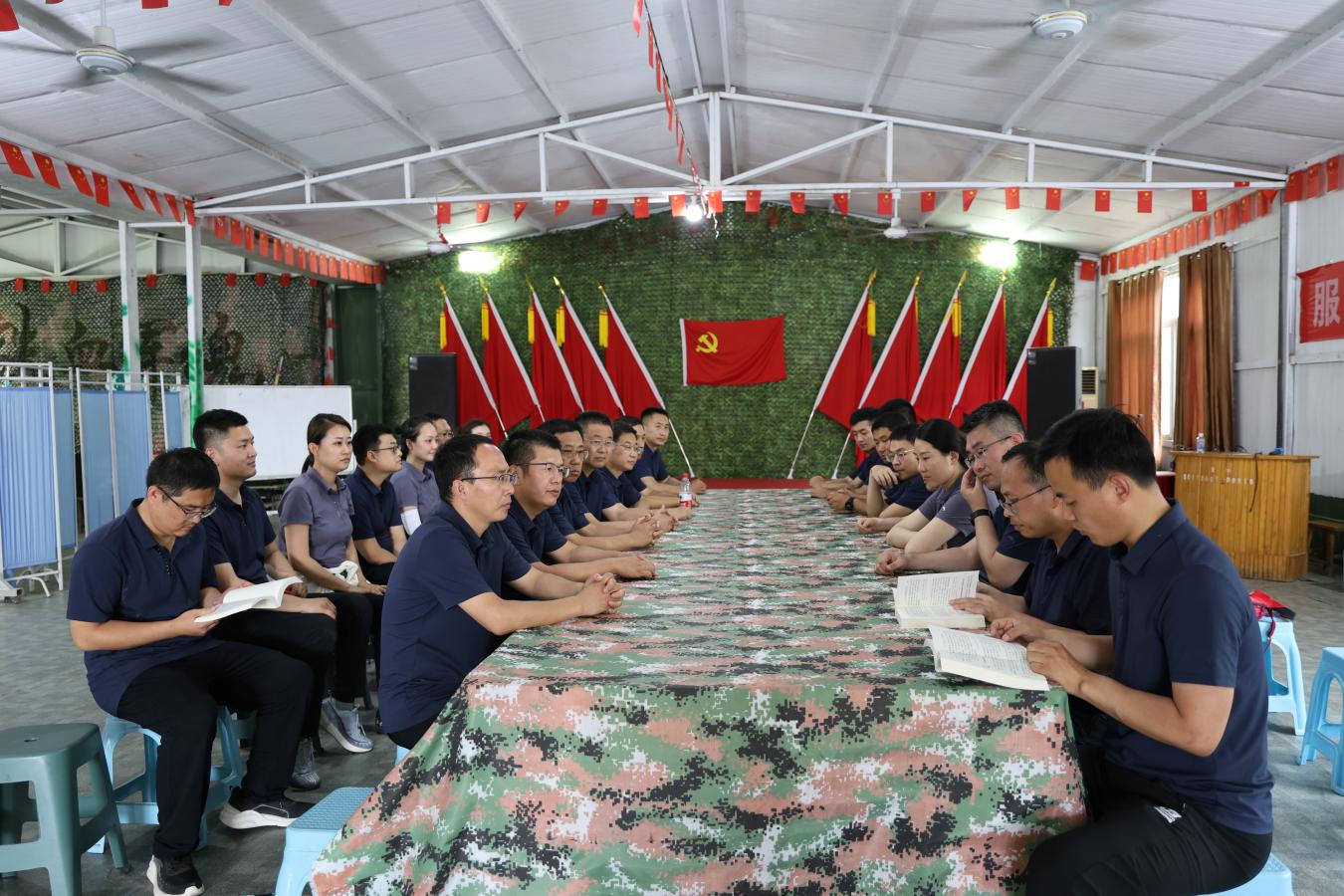 拓展结束后,集团党委副书记、执行董事、副总经理商献文向集团全体党员送上政治生日贺卡,全体党员面向党旗,重温入党誓词,在这个特殊的日子里,过一场别开生面的党员“生日会”。随后开展“同读一本好书,共庆党的生日”主题教育专题读书活动,原原本本学习 《习近平新时代中国特色社会主义思想专题摘编》, 用党的创新理论统一思想、统一意志、统一行动,把习近平新时代中国特色社会主义思想转化为坚定理想、锤炼党性和指导实践、推动工作的强大力量。