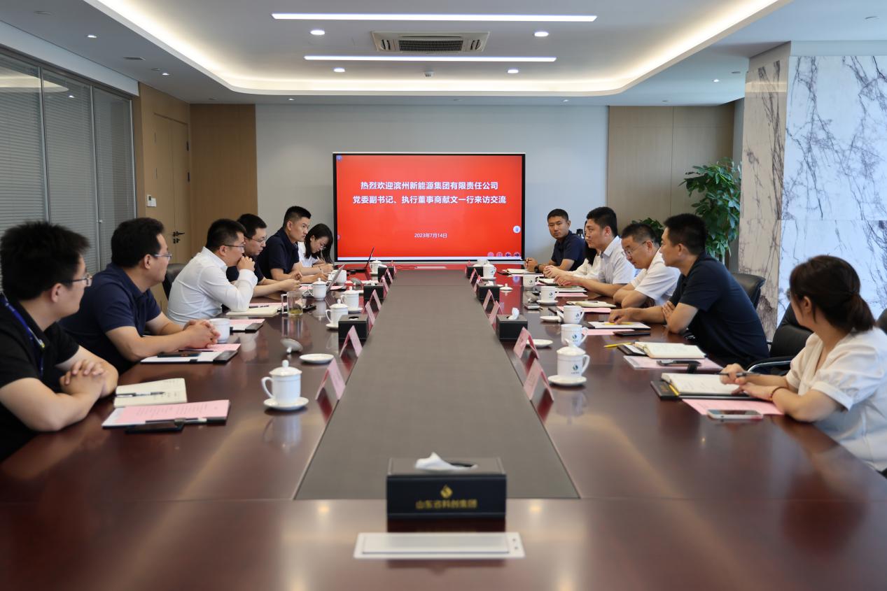 为进一加强省市国企合作,开展好“对标向前、争先进位”活动,推动滨州新能源产业研究院的设立运营,7月14日上午,滨州新能源集团到山东科创集团开展对标学习。集团党委副书记、执行董事商献文,党委副书记李赫,以及党群人力资源部、投资部、办公室等有关人员参加。山东科创集团总经理助理、山科园区公司执行董事、总经理梁博等陪同。