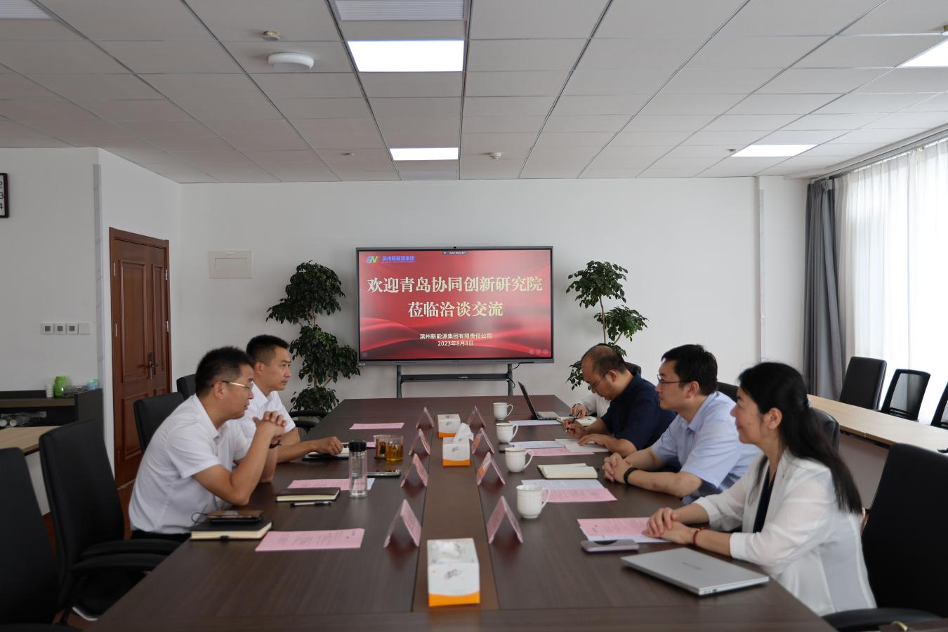 8月8日下午,青岛市军民融合发展促进中心主任龚超带队到滨州新能源集团考察洽谈。集团党委副书记、执行董事商献文,党委副书记李赫陪同考察。