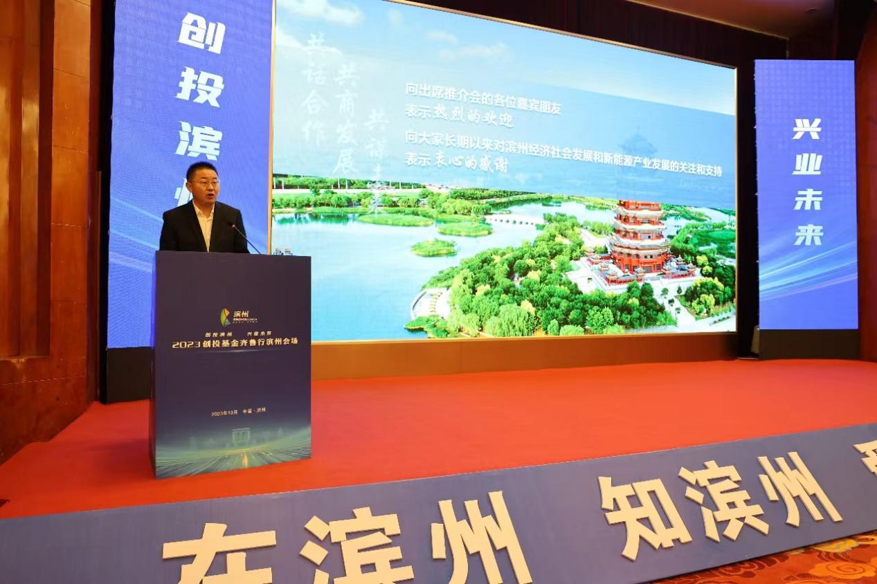 为充分发挥创业投资在支持实体经济特别是支持科技型企业发展中的作用,营造投资滨州的良好氛围,10月25日上午,“2023创投基金齐鲁行”滨州会场在滨州大饭店中海厅举行。山东省发展改革委党组成员、副主任滕双兴,滨州市委常委、市政府党组副书记穆杰等出席活动。滨州新能源集团参与活动承办,集团党委副书记、执行董事商献文出席活动并推介滨州新能源产业。