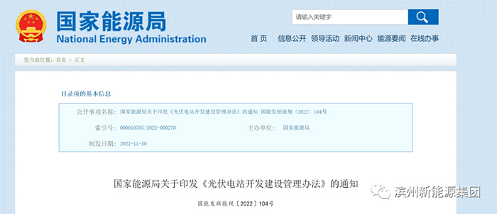 12月26日,国家能源局发布关于印发《光伏电站开发建设管理办法》(以下简称《办法》)的通知。《办法》自发布之日起施行,有效期5年。《光伏电站项目管理暂行办法》(国能新能〔2013〕329号)同时废止。