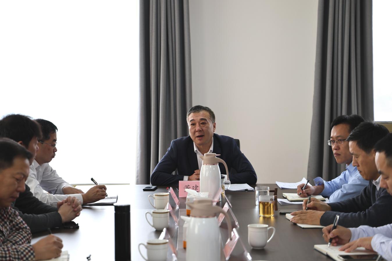 为推动鲁北基地风光一体化开发项目开工建设,我市与10家牵头开发企业在1月29日-2月1日会谈内容所达成共识的尽快落地,2月6日上午,滨州新能源集团组织10家牵头企业召开工作推进座谈会。集团党委书记、董事长董建忠主持会议并讲话,10家牵头企业项目负责人参加会议。