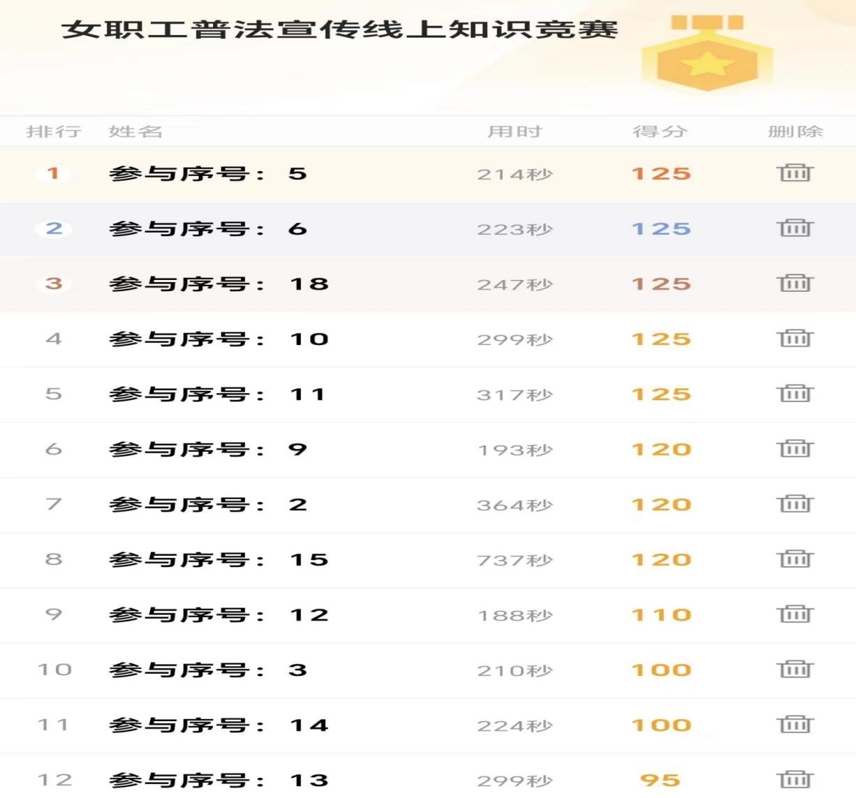 3月20日,集团全体女职工进行了线上法律知识竞赛。试题分为单选、多选、填空等类型,主要涉及《妇女权益保障法》、《女职工劳动保护特别规定》、《反家庭暴力法》等相关内容。旨在通过本次测试检验大家前期的学法成果,了解大家对相关法律知识的掌握程度,以考促学,以学促用,提高大家主动学习法律、运用法律的积极性。