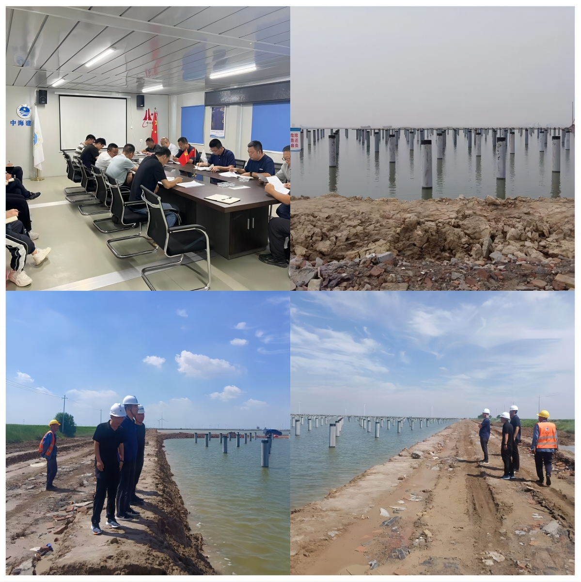 项目自今年3月底开工以来, 新拓公司派员驻场盯靠,坚守一线, 强化参建各方和业务部门联动,通过组织周例会、现场巡查等方式,密切关注施工细节, 克服了避让条件多、坑塘水面施工难等诸多困难, 争分夺秒抢进度,千方百计提效率,把控工程质量、进度和安全, 瞄准并网发电时间节点 全力推进项目建设 , 确保项目早日投产达效 。