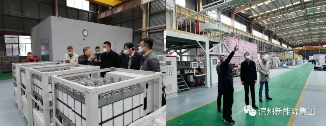 在恒安储能科技有限公司,项目组一行实地参观了锌溴液流储能电池生产车间,详细了解了电池的生产流程、生产工艺和关键材料 组件,对锌溴液流电池储能系统的构成、特性、应用前景等进行了充分的交流。双方就在滨州投资建设生产基地达成了初步意向,后续将就合作细节进行深入洽谈。