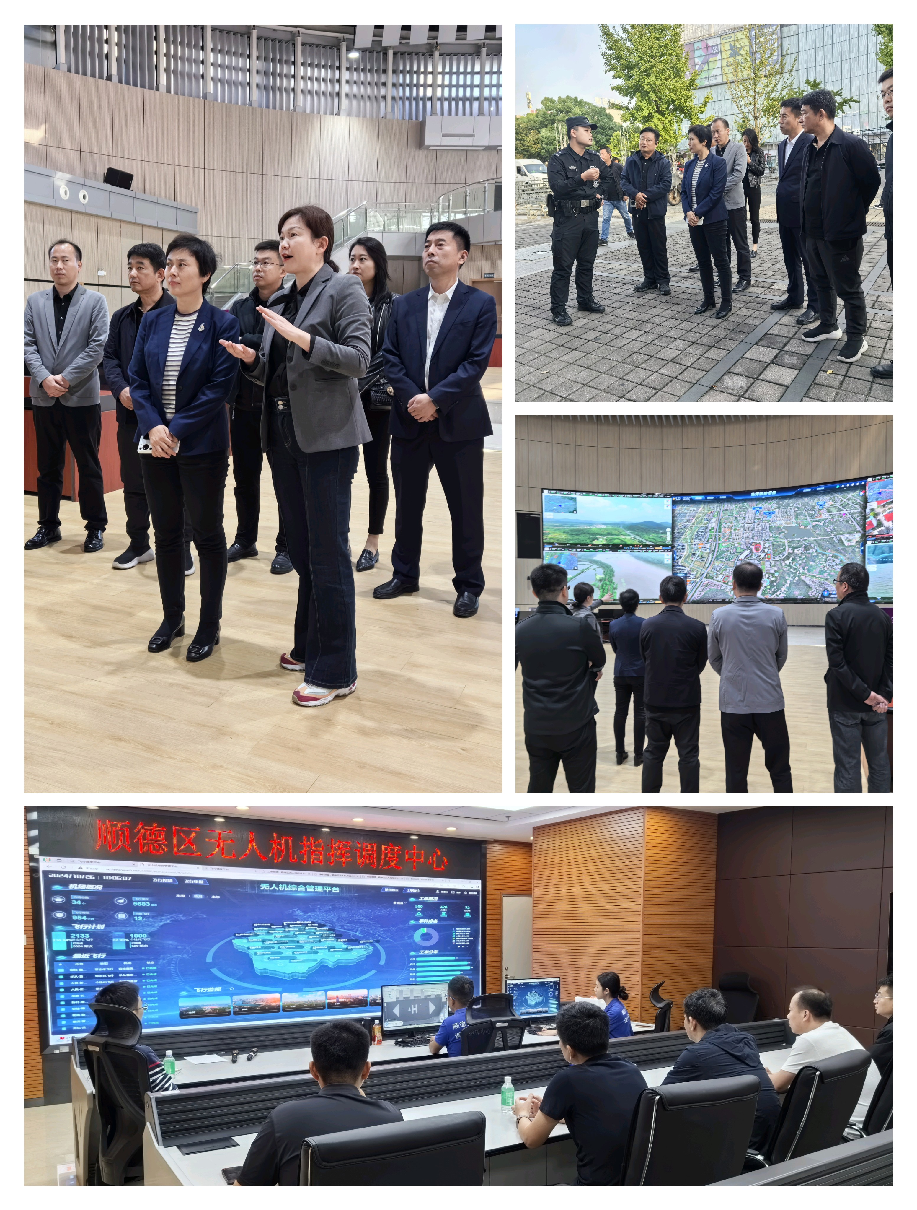 在佛山市顺德区,考察组参观了顺德区无人机指挥调度中心,观看了其常态化、个性化政务飞行任务及AI智能算法、工单反馈模式等功能演示。双方就该中心技术服务支撑、投资建设、运行维护等进行了座谈交流。