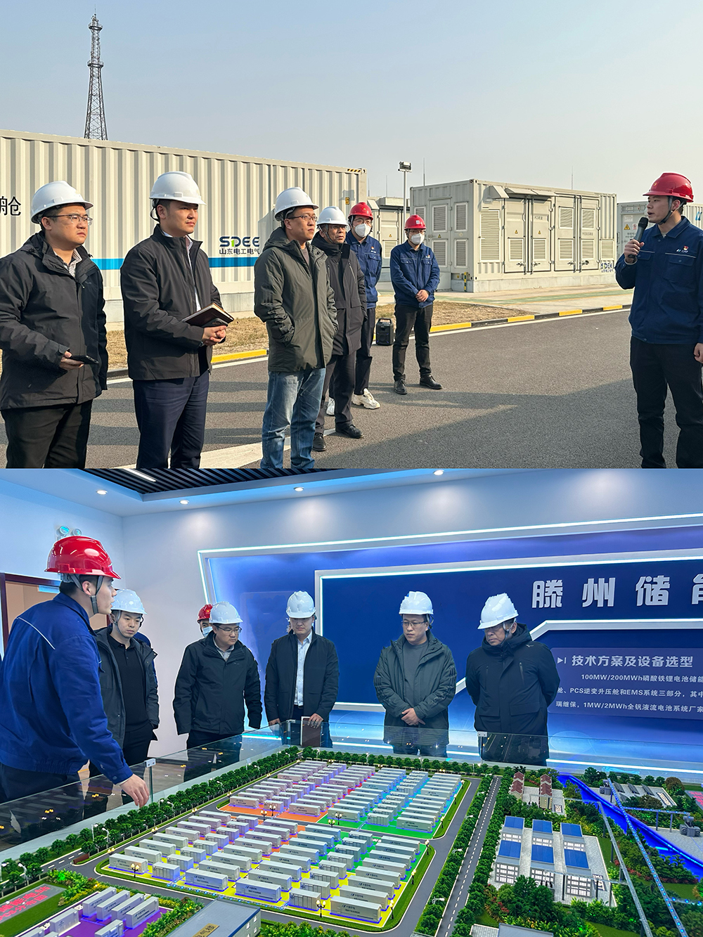 在滕州独立储能项目现场,项目专班实地参观了独立储能电站、项目展厅以及储能电站集控中心。在参观过程中,项目专班与储能电站负责人员就储能电站建设、运维以及现有电站盈利模式等事宜进行了分享交流