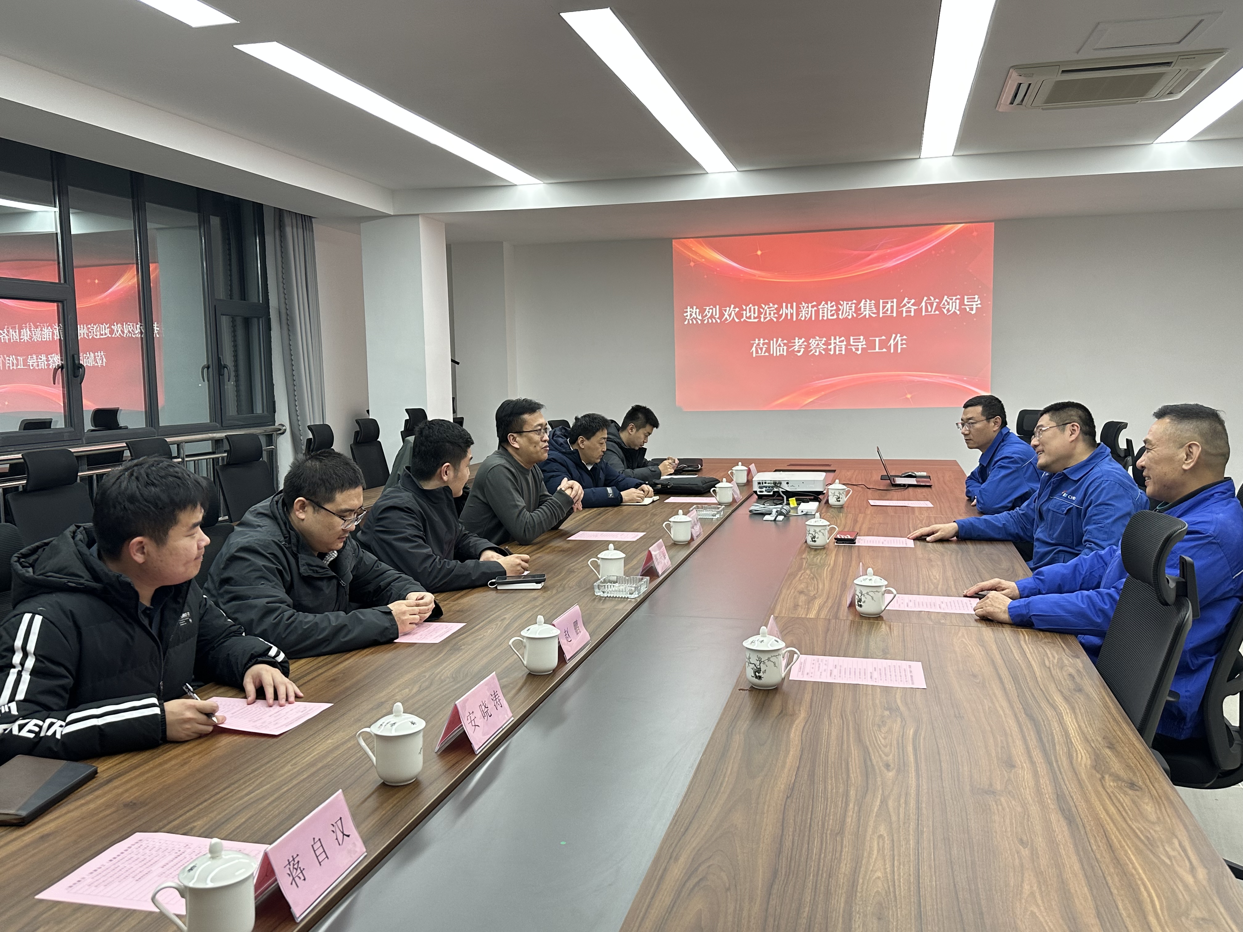 在济宁邹城集中式光伏电站,项目专班实地参观了集中式光伏发电项目现场、集控中心,观看了光伏电站宣传片,并详细了解了项目的基本概况、建设内容以及电站2022年运行指标。参观结束后,项目专班与电站建设运行相关负责人员进行了座谈交流,双方就集中式光伏电站项目开发建设流程以及后期运行维护等问题进行了探讨与研究。