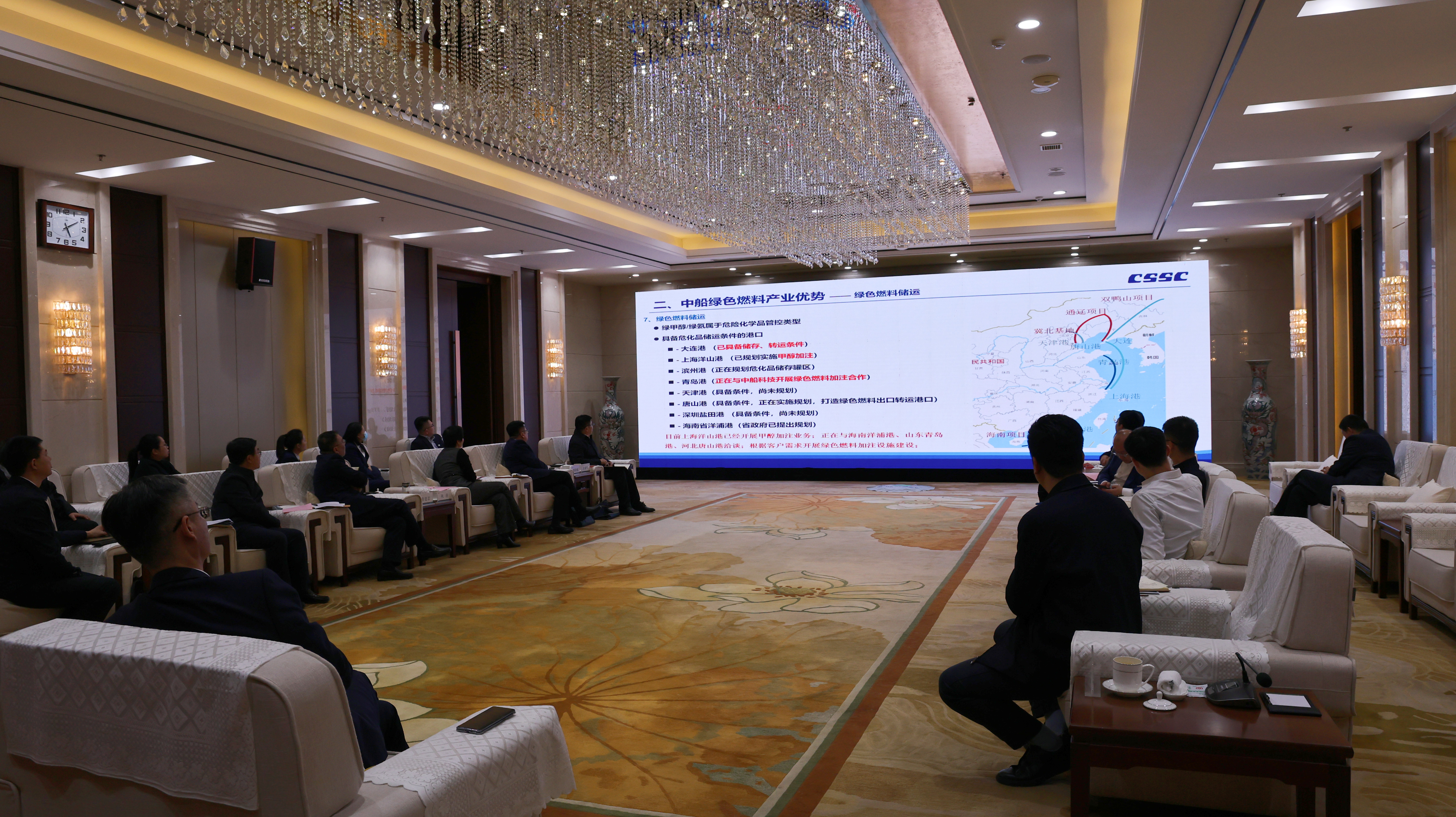 与会人员认真听取了“中船滨州50万千瓦风电制氢耦合生物质气化合成甲醇项目”建设规划、实地调研及下步推进方案的汇报。双方围绕绿电供给、生物质保障、甲醇送出线路、源网荷储项目申报、项目建设用地等问题进行了深入细致地交流,进一步商讨了项目的可行性和方案细节。此次座谈迈出了项目落地的关键一步。