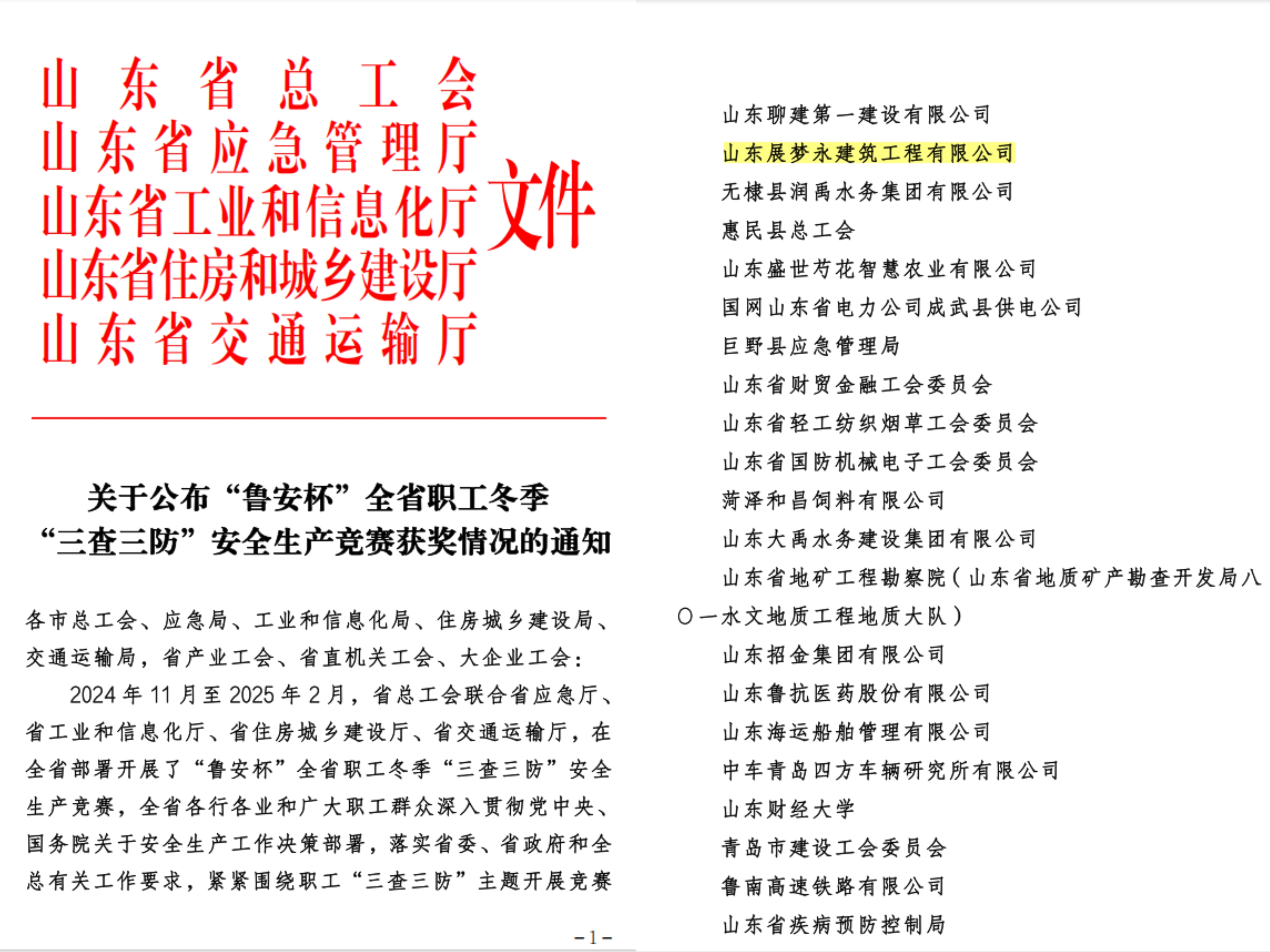 喜报!山东展梦永建筑工程有限公司捷报频传!