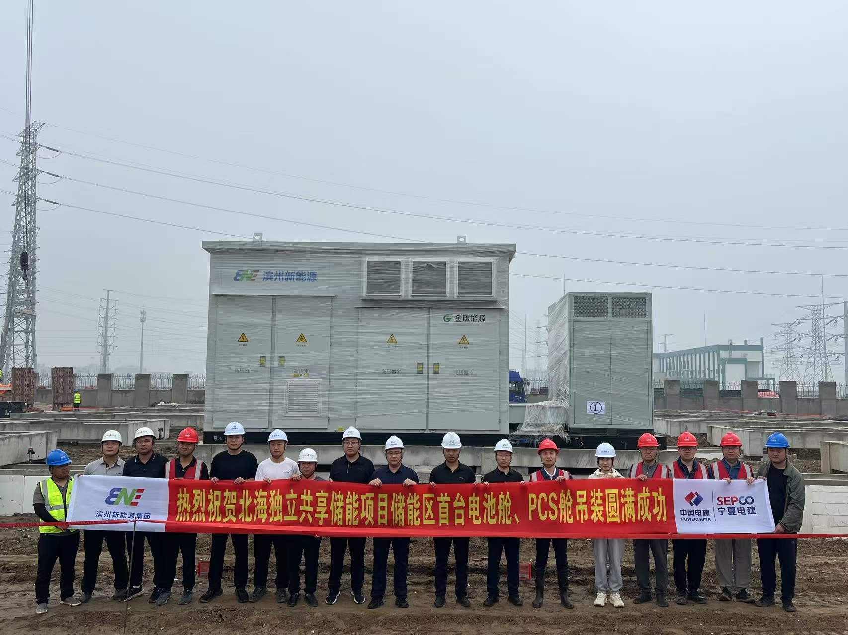 北海独立共享储能项目首台电池舱、PCS舱吊装圆满成功