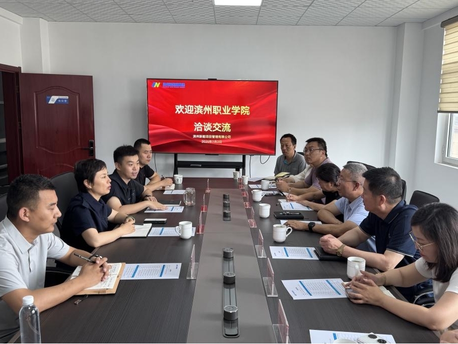 7 月 2 日上午, 滨州职业 学院 党委委员、滨州应用科技研究院 院长 胡洪涛 一行到滨州新能项目管理有限公司调研滨州市低空智能感知一体化平台 。 滨州新能源集团党委副书记、副董事长、总经理巩萍陪同调研。
