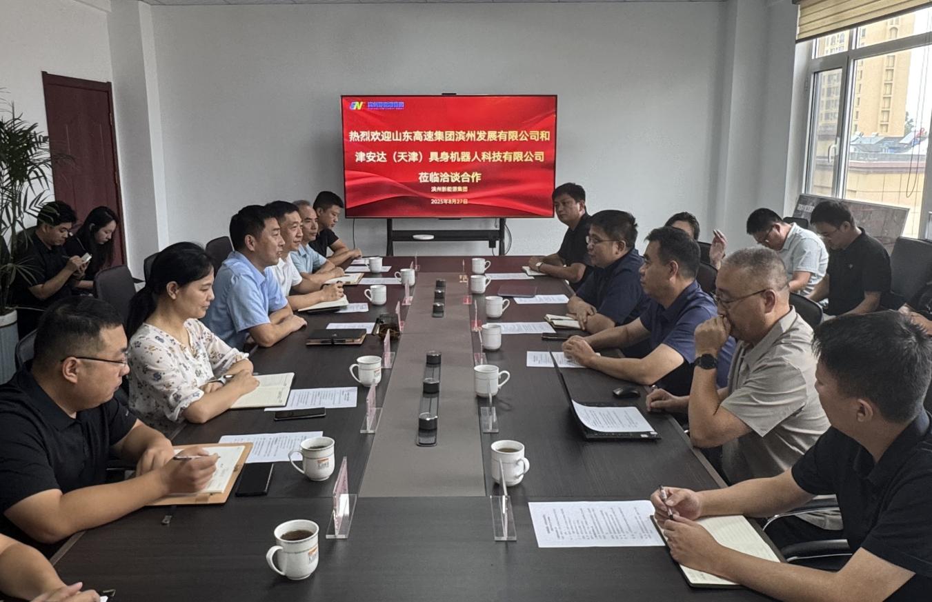 8月27日,津安达(天津)具身机器人科技有限公司常务副总经理马国水一行到滨州新能源集团考察座谈。集团党委委员、副总经理王义刚参加座谈。