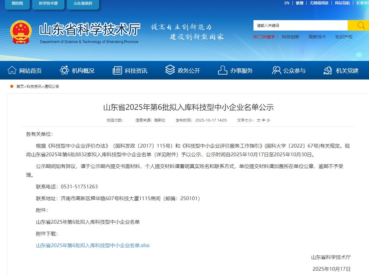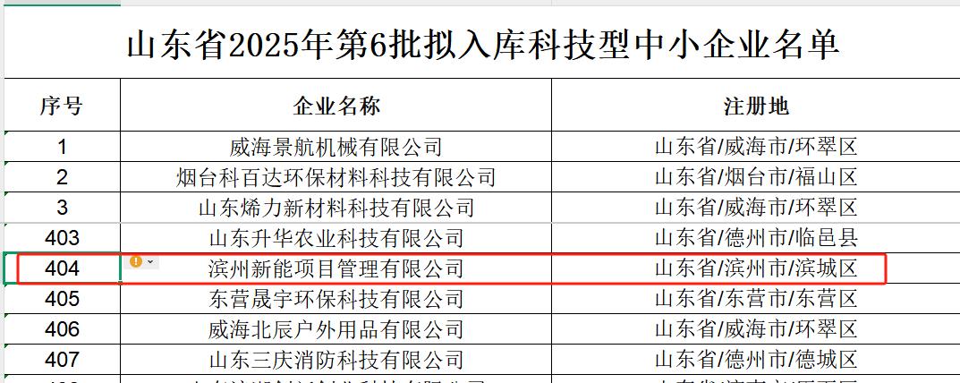 近日,山东省科学技术厅发布《关于山东省第 6批拟入库科技型中小企业名单的公示》,滨州新能源集团权属企业滨州新能项目管理有限公司顺利通过评审,成功申报并备案入库成为科技型中小企业。