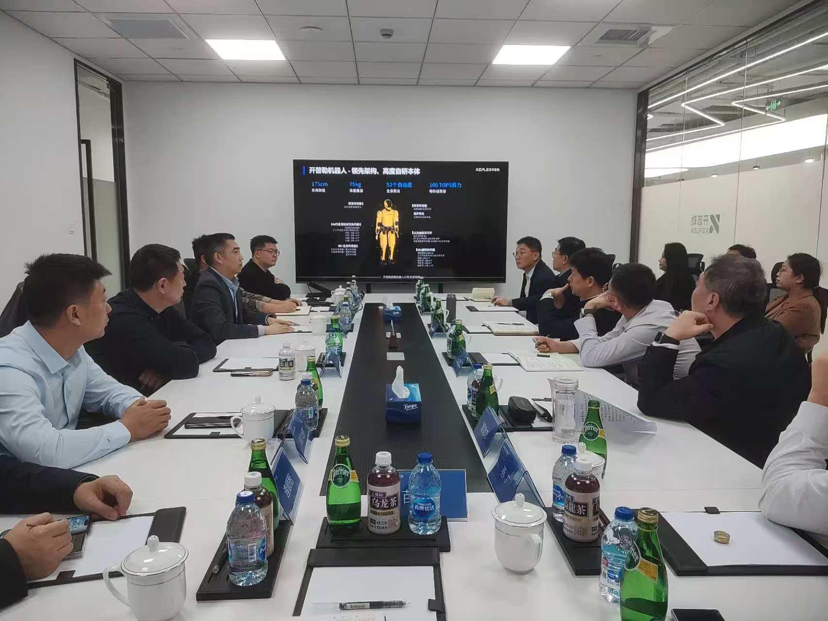 在上海开普勒机器人有限公司,胡薄一行参观了机器人展厅,详细了解机器人设计、生产制造、大模型训练、实际应用场景、同类型产品比较、商业化路径等情况。在座谈中,胡薄介绍了滨州的区位优势、产业优势和市场优势,指出滨州坚持把智能制造作为推动产业技术变革和优化升级的主攻方向,大力推动高端装备、新材料、高端化工、智能纺织等优势产业全产业链生产制造与智能化提升融合发展。开普勒公司 CEO胡德波表示,人形机器人的最佳应用起点是工业场景,滨州作为工业强市,为机器人的训练和规模化应用提供了广阔的场景,期待尽快到滨州考察调研、寻找合作机遇。