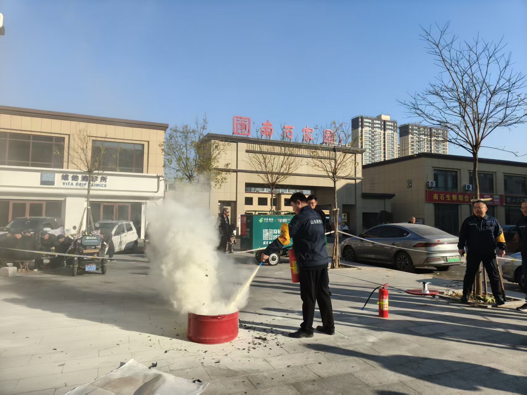 疏散集结后, 公司 现场开展了灭火器材实操培训。在专业人员指导下, 干部职工 踊跃参与,亲手操作干粉灭火器扑灭 “油盆火灾”,将理论知识转化为实战技能,提升了初期火灾处置能力。