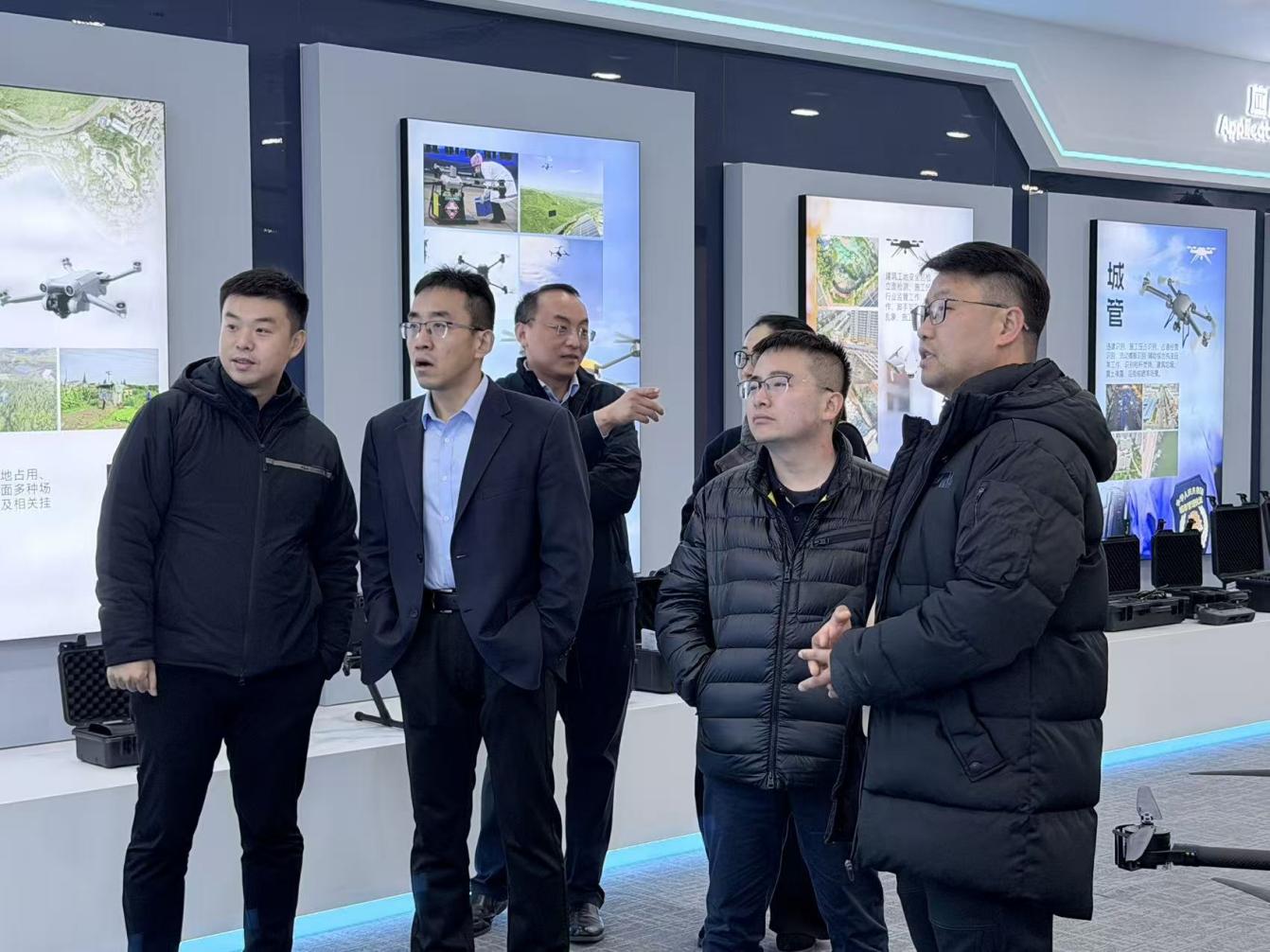 15 日下午,调研组首先来到滨州市低空智能感知一体化平台指挥中心,听取平台建设汇报,观摩功能演示及无人机在多场景应用的典型案例,并就平台发展方向展开交流。随后,调研组考察了低空展厅、生产车间、 CAAC 执照培训基地及青少年无人机科普研学基地,深入了解集团在低空经济领域的阶段性成果与产业规划。