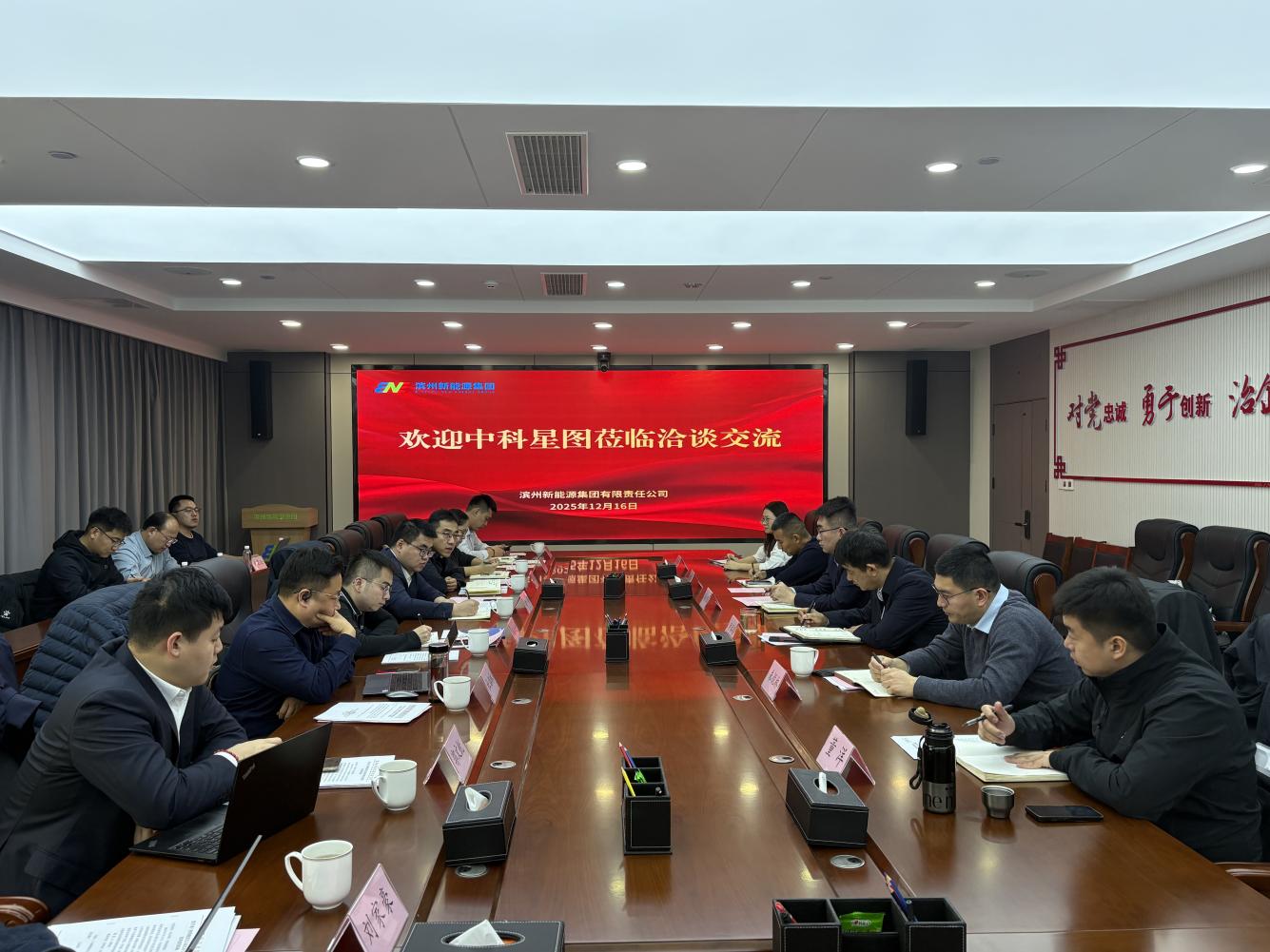 12 月 15 日至 16 日,中科星图副总裁、星图智源总裁胡立之一行莅临滨州新能源集团,围绕区域低空经济产业发展开展专题调研与合作交流,共商合作机制,共谋发展新篇。市发改委、中移齐鲁创新院、中国移动滨州分公司等相关单位负责人,集团党委委员、副总经理尹祥鲁参与调研座谈。